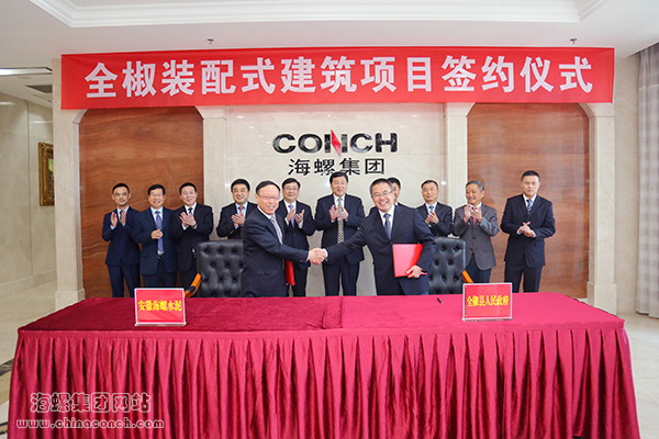 2019年5月24日,海螺水泥與全椒縣人民政府在海螺集團(tuán)總部簽署了裝配式建筑項(xiàng)目合作協(xié)議。海螺集團(tuán)黨委書記、董事長高登榜,集團(tuán)公司副總經(jīng)理、海螺水泥副董事長王建超,海螺水泥總經(jīng)理吳斌、副總經(jīng)理柯秋璧,全椒縣委書記朱大綱、縣長楊光、副縣長闞緒瑞等出席并見證簽約儀式。吳斌、楊光代表雙方簽署協(xié)議。