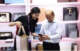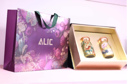 本次節(jié)日禮品展區(qū)設計別出心裁,產(chǎn)品花樣百出,其中最引人矚目的當數(shù)“ALIC瓶子禮品包裝袋”。該系列包裝選用環(huán)保材質,表面覆亞光膜,觸感細膩且具備良好的承托力。設計上以典雅紫色為底,搭配精致的花卉與靈動蝴蝶圖案,品牌“ALIC”標識采用燙白工藝,簡潔醒目。瓶身設計與手提袋圖案相互呼應,整體風格協(xié)調(diào)統(tǒng)一。蝴蝶意象不僅傳遞出“蛻變與新生”的美好寓意,也呼應了ALIC品牌持續(xù)創(chuàng)新、不斷突破的設計理念。據(jù)悉,該系列產(chǎn)品憑借其高顏值與實用性的結合,已吸引多國采購商駐足詢價,部分客戶已進入訂單洽談階段。
