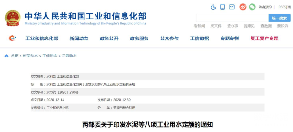 水利部 工業(yè)和信息化部關(guān)于印發(fā)水泥等八項工業(yè)用水定額的通知