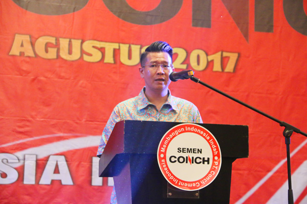 籌辦本次產(chǎn)品推介會的主要客戶CV.SUMATRA BAJA INDONESIA負責人Koyo先生致辭。他首先對海螺水泥的整體實力和在楠榜地區(qū)快速發(fā)展表達了欽佩,并通過列舉“海螺水泥捐建當?shù)厍逭嫠隆薄昂B菟嗔x務開展當?shù)貏诠な褂盟嗉寄芘嘤枴钡葘嵗?,對海螺水泥投身印尼、建設印尼表示了贊揚。他希望能與海螺水泥進一步深化合作,通過共同努力,讓楠榜地區(qū)更多的商戶認可海螺、選擇海螺。