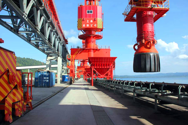 西巴項(xiàng)目公司碼頭岸線設(shè)有4個(gè)泊位,配備4臺16噸門座起重機(jī),1臺1500t/h移動式散裝裝船機(jī),1臺100t/h螺旋袋物裝船機(jī),可以同時(shí)??恳粭l5萬噸級海輪,3條3千噸船舶,年吞吐能力達(dá)到200萬噸。