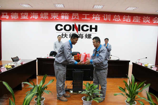 培訓(xùn)總結(jié)座談會(huì)上,八名學(xué)員在師傅的見(jiàn)證下對(duì)這三個(gè)月以來(lái)的收獲發(fā)表了感言,表示回國(guó)后一定不負(fù)眾望,為推動(dòng)馬德望海螺各項(xiàng)工作貢獻(xiàn)自己的力量。師傅們?yōu)橥降苋〉玫某煽?jī)感到高興,表達(dá)了師傅對(duì)徒弟的祝福與寄托?!跋M銈?cè)诨貒?guó)后能盡自己所能,把所學(xué)知識(shí)技能運(yùn)用到日常的生產(chǎn)工作中,分享給其他同事,讓他們與你們共享學(xué)習(xí)。雖然這次的培訓(xùn)已經(jīng)結(jié)束,但學(xué)習(xí)是無(wú)止境的,在后期的工作中,如果有什么困難或者疑惑,隨時(shí)可以聯(lián)系我們,我們一定會(huì)盡自己所能解決問(wèn)題。”師傅倫海強(qiáng)感慨地說(shuō)。