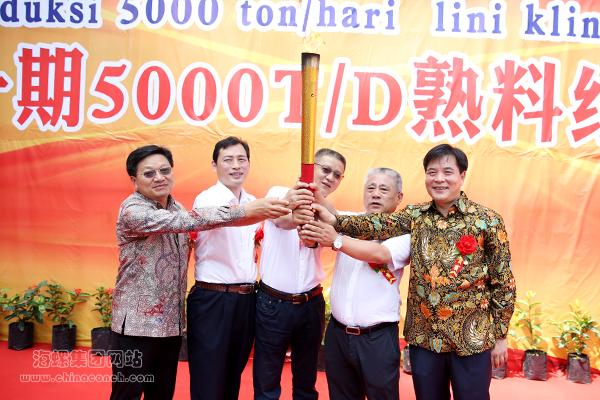 9時28分,點火儀式在窯廣場正式開始。海螺水泥副總經(jīng)理李曉波、湖南區(qū)域主任何廣元、印尼區(qū)域副主任俞越、安全生產(chǎn)環(huán)保部常務(wù)副部長章嗣福,合作方和建設(shè)施工單位負(fù)責(zé)人,以及調(diào)試專家組成員、幫扶人員、各參建單位代表及北蘇海螺全體員工共500余人參加了點火儀式。